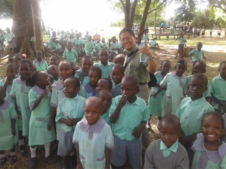 Providing awareness on the importance of clean water to elementary school students in Kisumu, Kenya, during the UNESCO/DAAD-Alumni Conference “Water in Africa,” organized in collaboration with Maseno University, Bondo University College, the Excellence Center for Exchange and Development (EXCEED), DAAD, the Federal Ministry for Economic Cooperation and Development (Germany), and UNESCO, October 1–3, 2012.